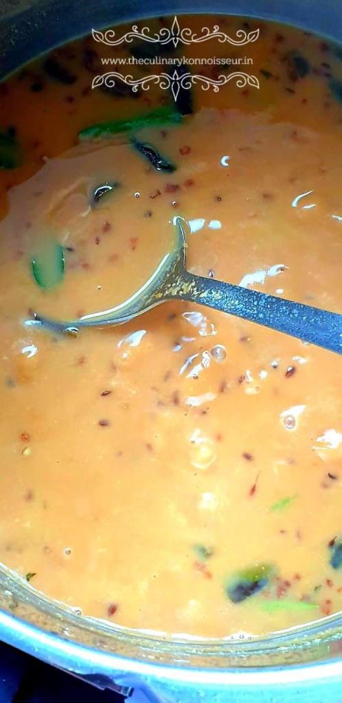 - Add the tamarind water and jaggery and boil for another 5-7 minutes. Switch off the flame.