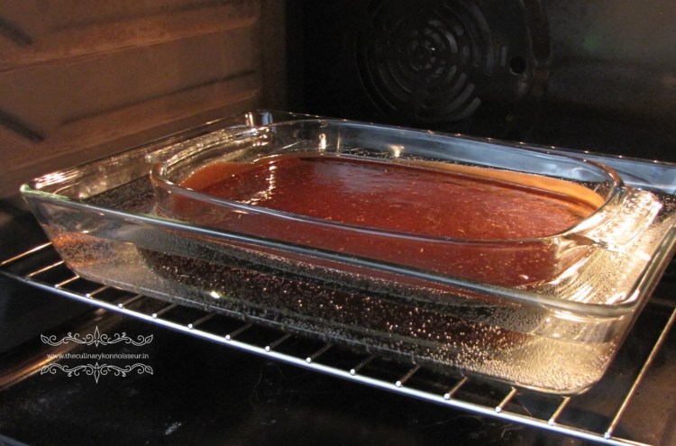 9. Bake in the oven at 180 degrees Celsius for about 45-47 minutes until the mud base rises to the top & the slush thickens to a flowing gooey mass. If you place your glass baking dish in a larger dish half filled with water, it helps the slush stay more moist and gooey, as compared to without it. (Called a Bain-marie)
