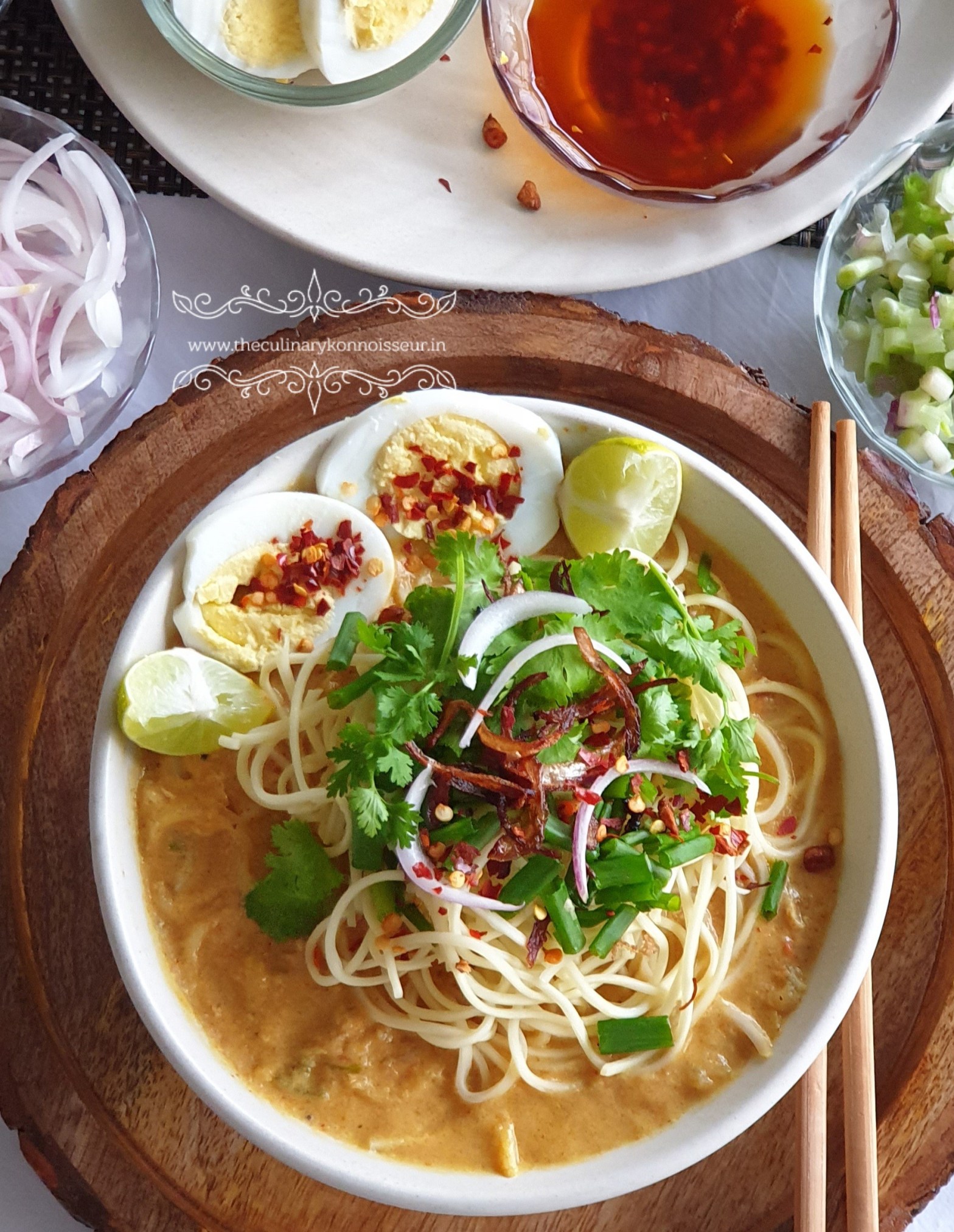 Yes I did a lot of research on the spelling & while there are several colloquial spelling versions including Khauswey, Khao suey, Khau soi & so on, this was the most authentic one sent in by a kind Burmese lady, who in fact took pride in sharing it with the rest of us. That’s just a bit of trivia for you.
