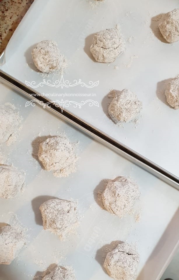 2. Line two aluminium baking trays preferably with parchment or butter paper for best results in cookies.