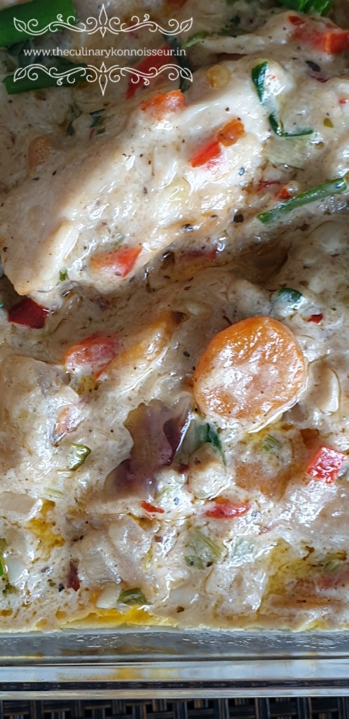A total crowd pleaser, an easy peasy one pot that’s loaded with the flavour of fresh light aromatics like garlic, onion, celery, spring onions & herbs such as fresh dill or oregano to elevate the creamy sauce & coat the juicy chicken pieces, giving it a super fancy feel.