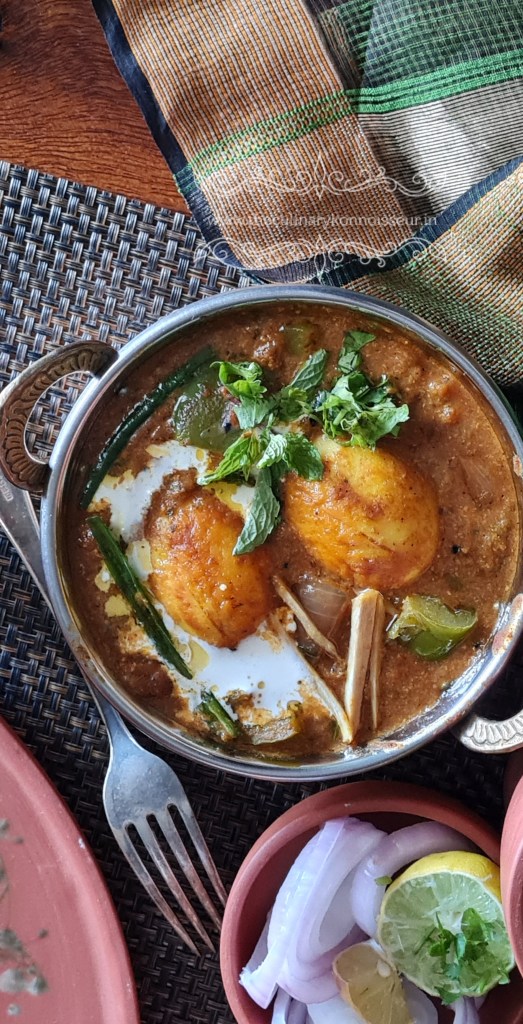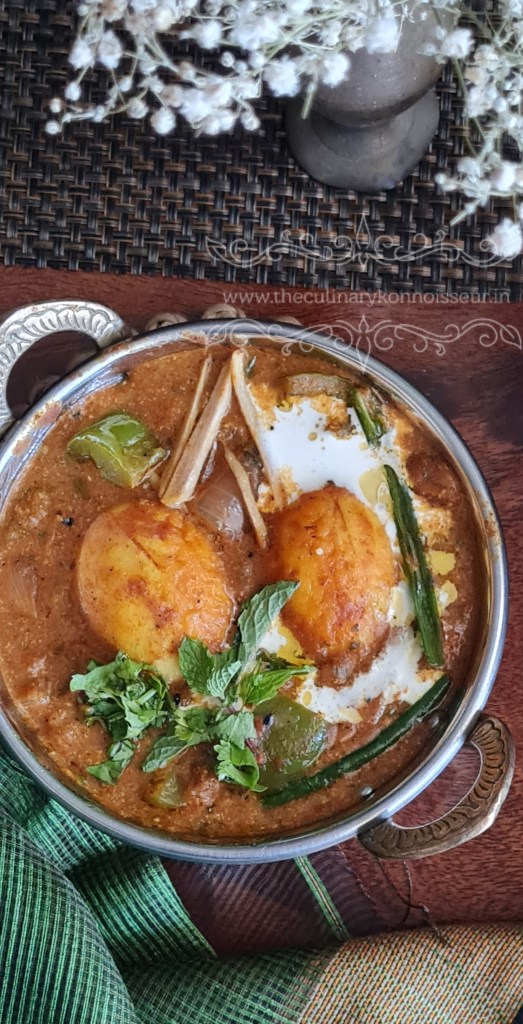 An aromatic gravy with robust flavours’ that you can make just as rich as your family enjoys it! The Egg or Anda Kadhai that I have made restaurant-style today with some crunchy diced onions & green capsicum to quickly bulk up your gravy (skip it out if you wish). Head straight to the link for the detailed recipe and video for more.