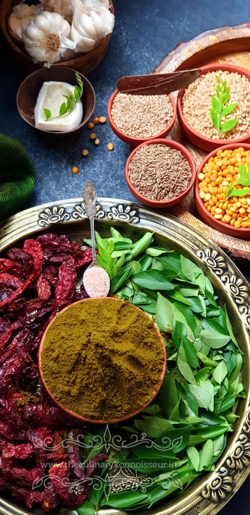 Here’s a strikingly aromatic chutney powder that imparts loads of flavour to liven up any mundane rice-dal-roti meal in your day. Comprising essentially of dry roasted fresh curry leaves along with a few kitchen staples such as dals/lentils and flavourings such as salt, sugar, red chillies & tamarind/garlic to your taste. You can even add roasted flax seeds for additional nutrition.
