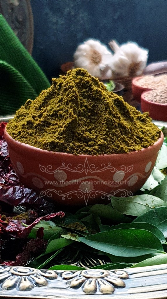 - Finally, store the curry leaves powder in an airtight container and enjoy with hot rice idlis / bread / dosa mixed in melted ghee or gingelly oil.