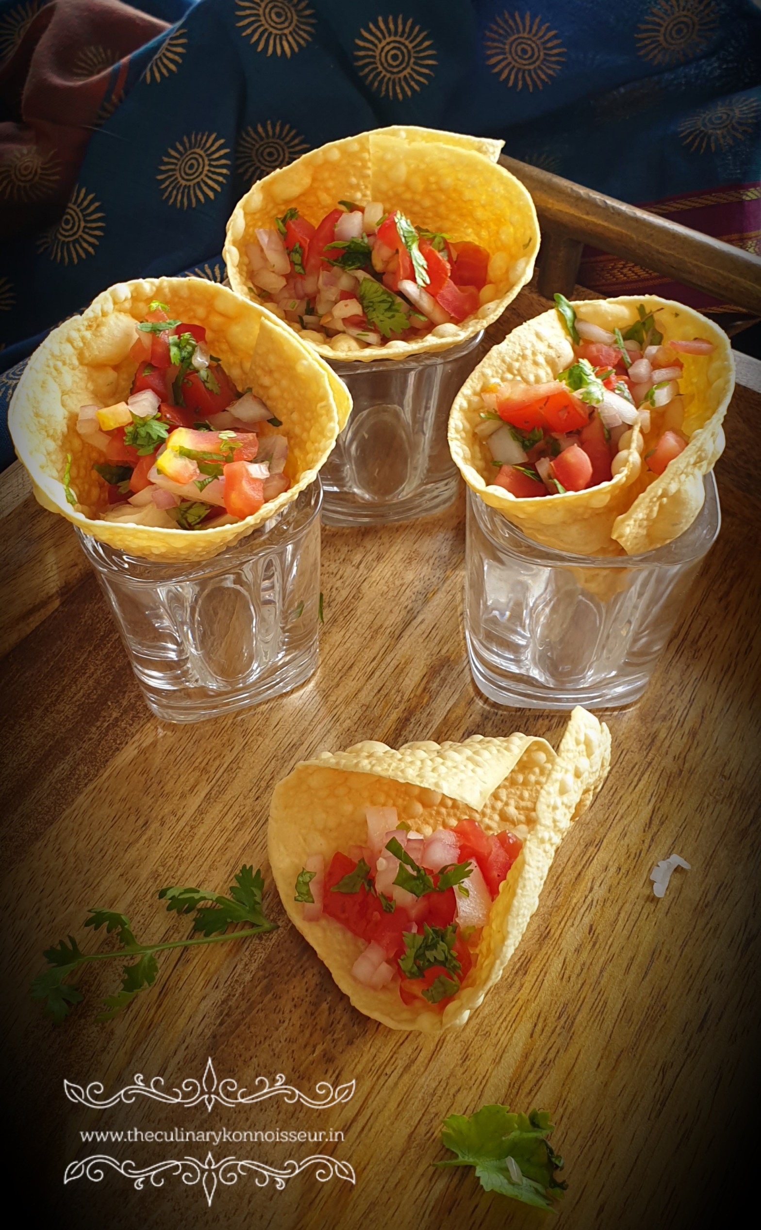 Scrumptious & crunchy roasted masala papad cones filled with a delightful tomato-onion salsa. The perfect non-oily appetiser for your next house party! Recipe for Crunchy Roasted Masala Papad Cones Ingredients Serves (4 – 6 people) 4-6 Punjabi or Garlic papads for roasting For the fresh salsa filling: 2 medium sized onions, finely chopped 2 mediumContinue reading “Crunchy Roasted Masala Papad Cones”